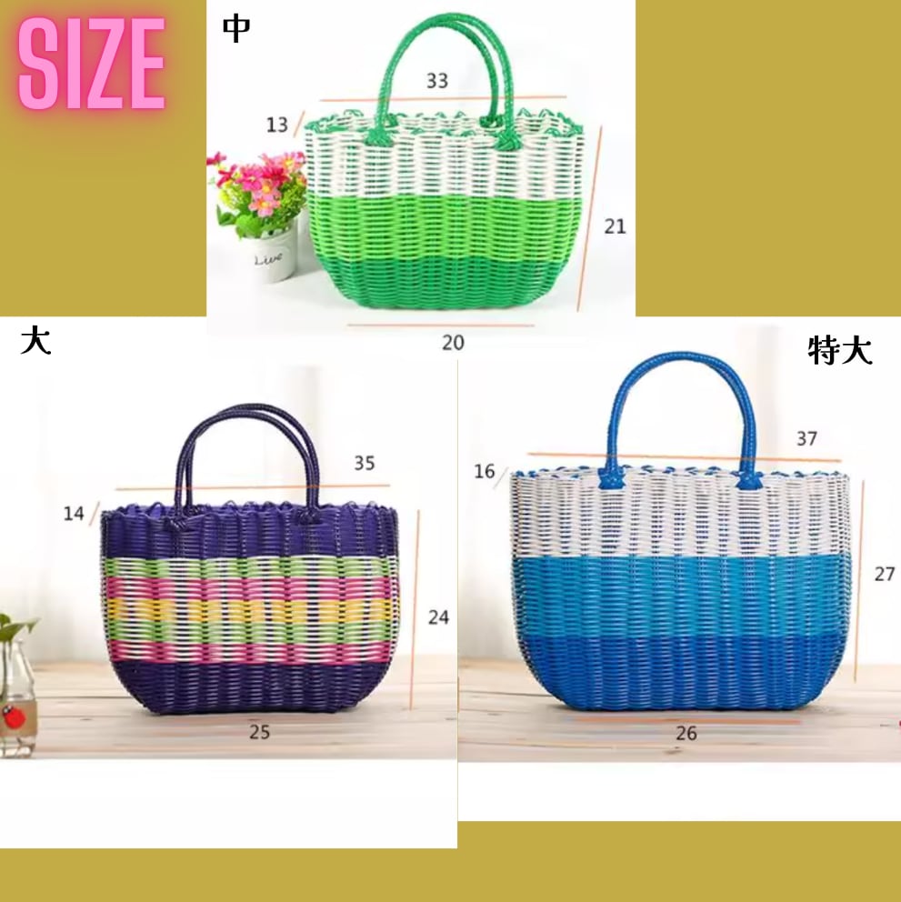 昭和レトロカラーカゴバッグ(5color×2 types) 25507