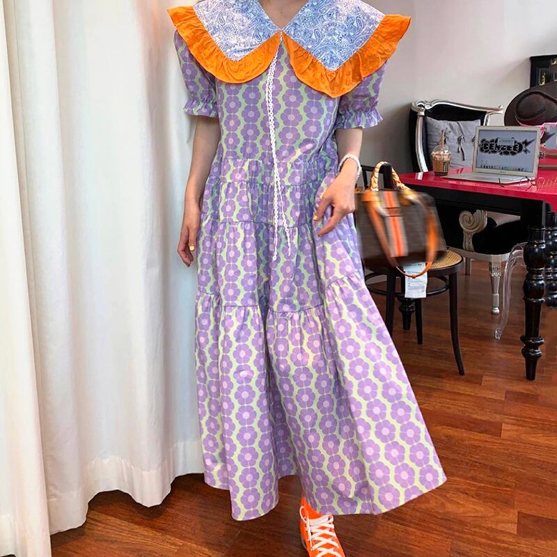 ビッグドールカラーパフスリーブフラワーワンピース 25517