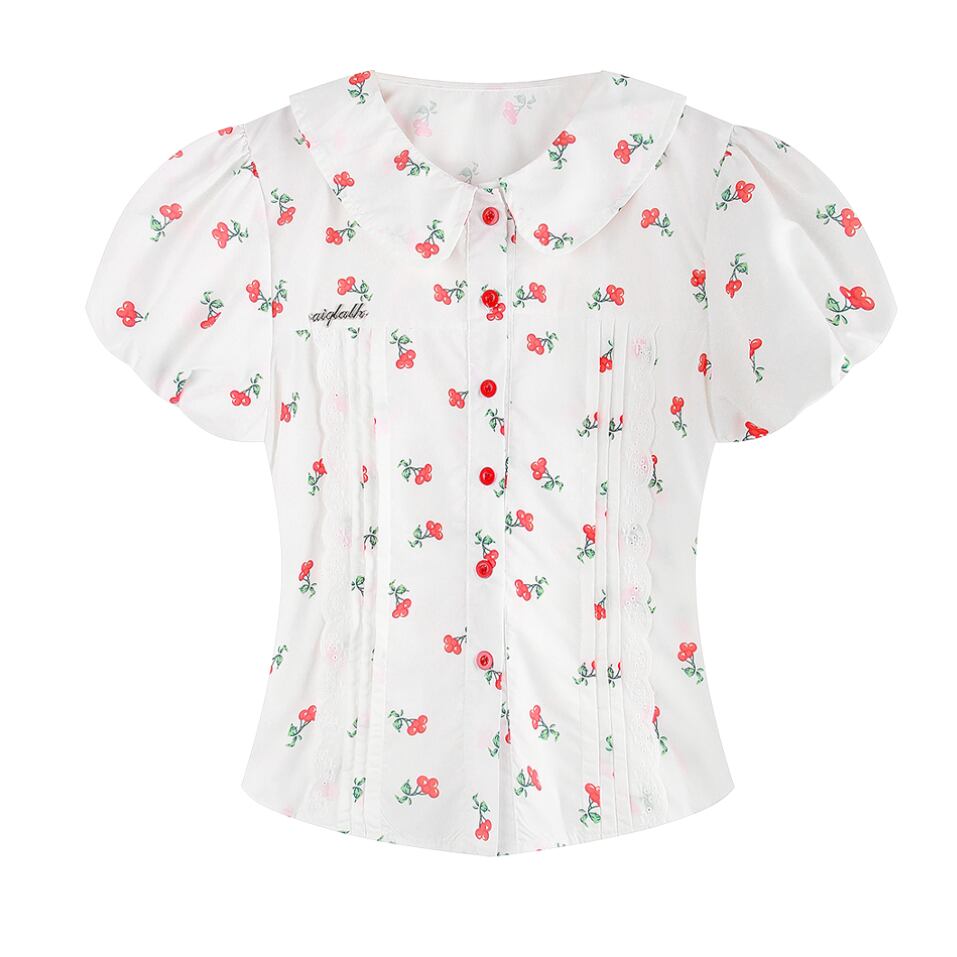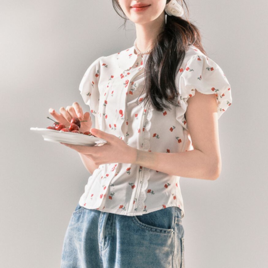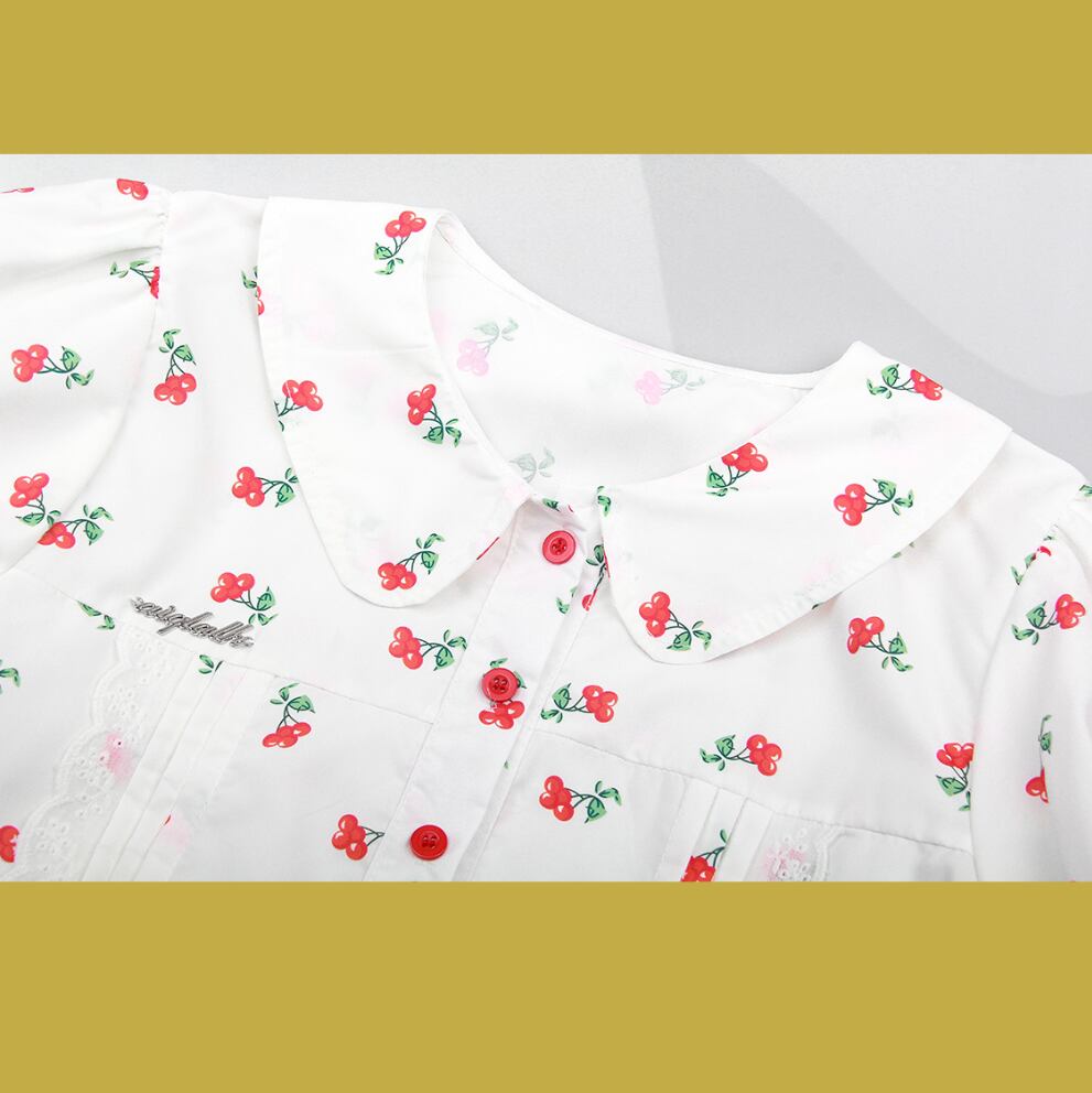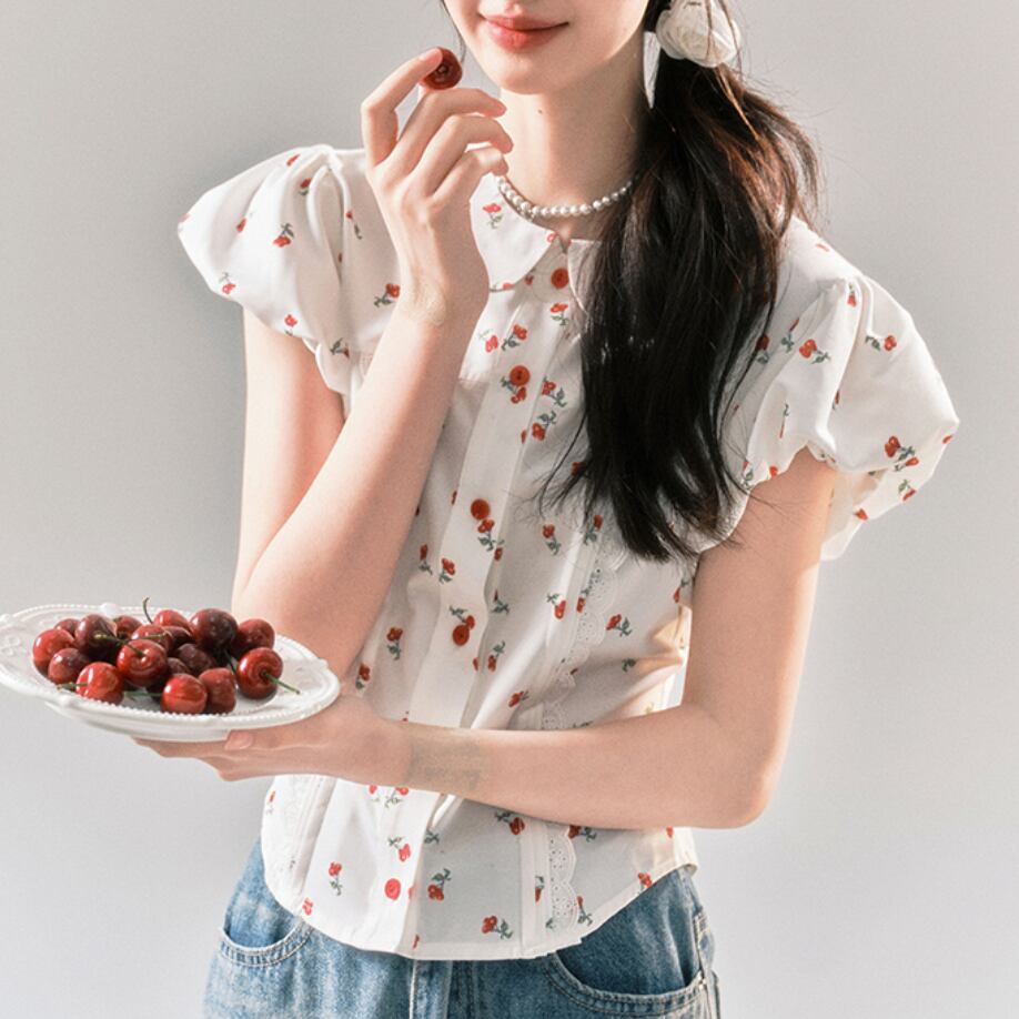 レトロさくらんぼパフスリーブブラウス 25549