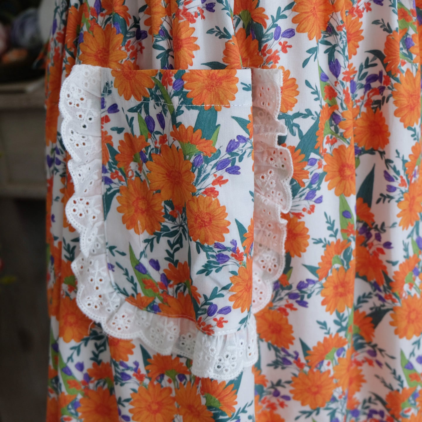 レトロフラワーエプロンワンピース 25551