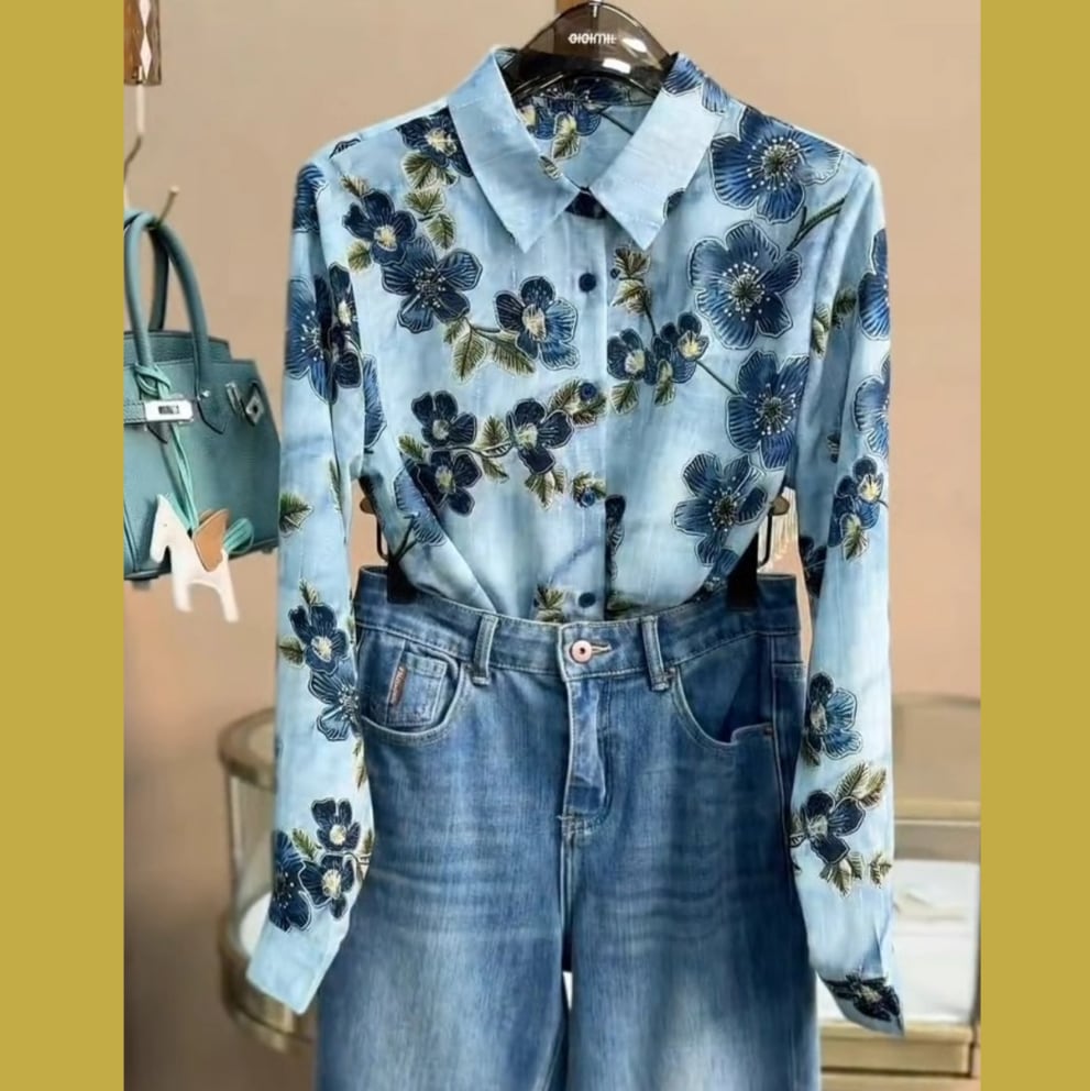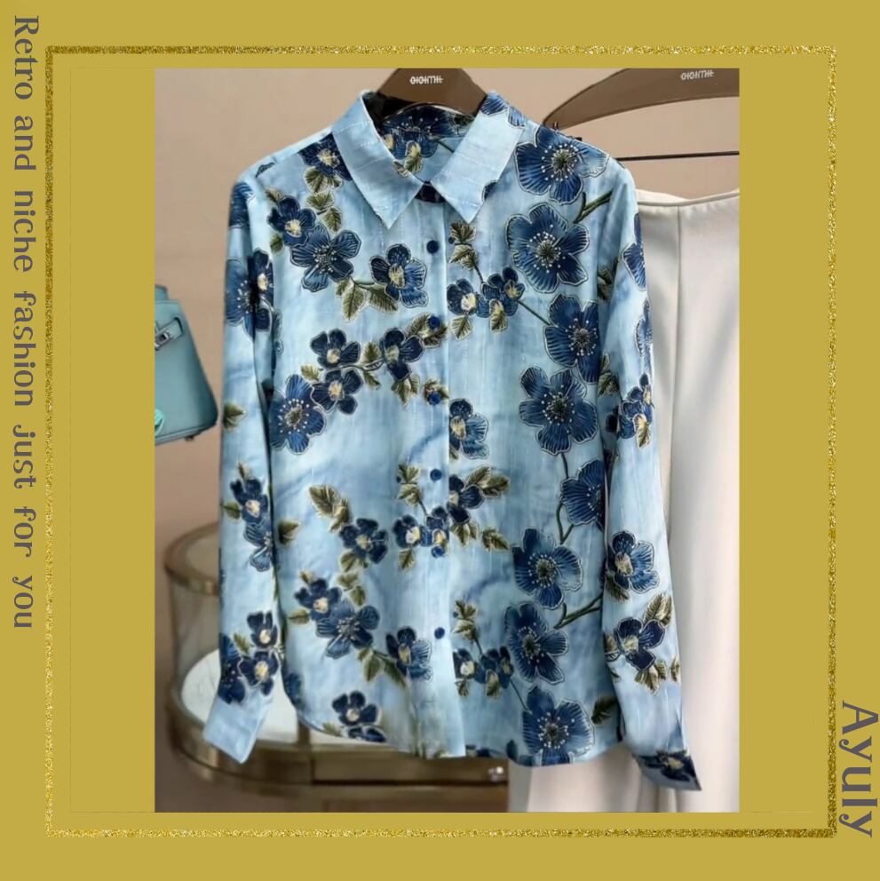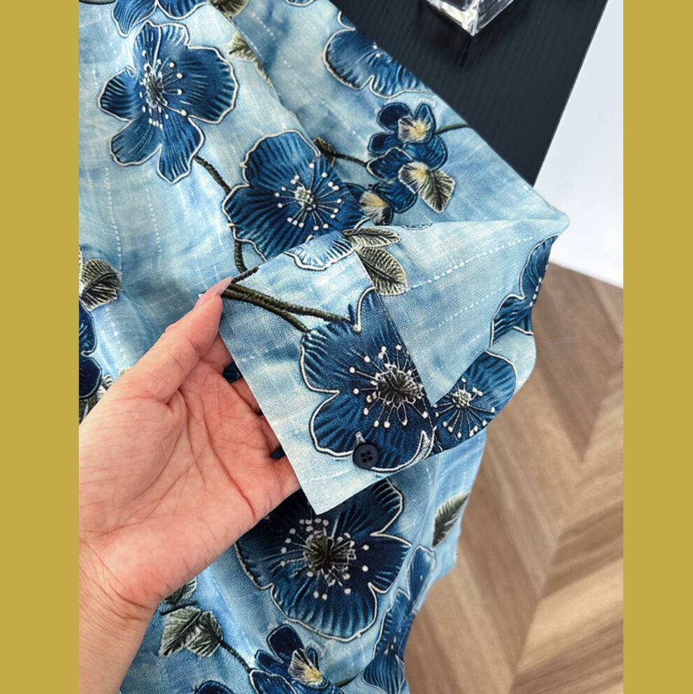 ブルーレトロフラワーシャツ 25594