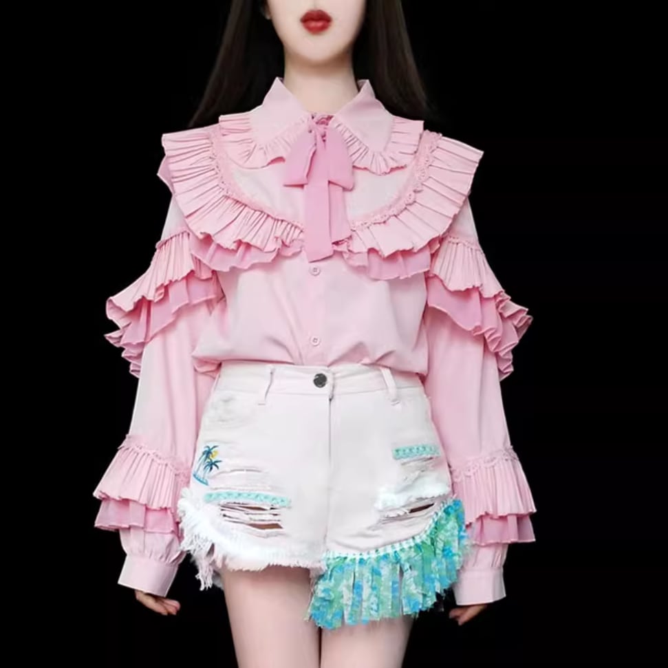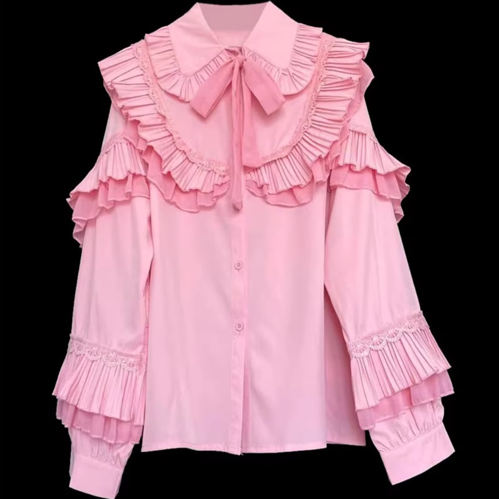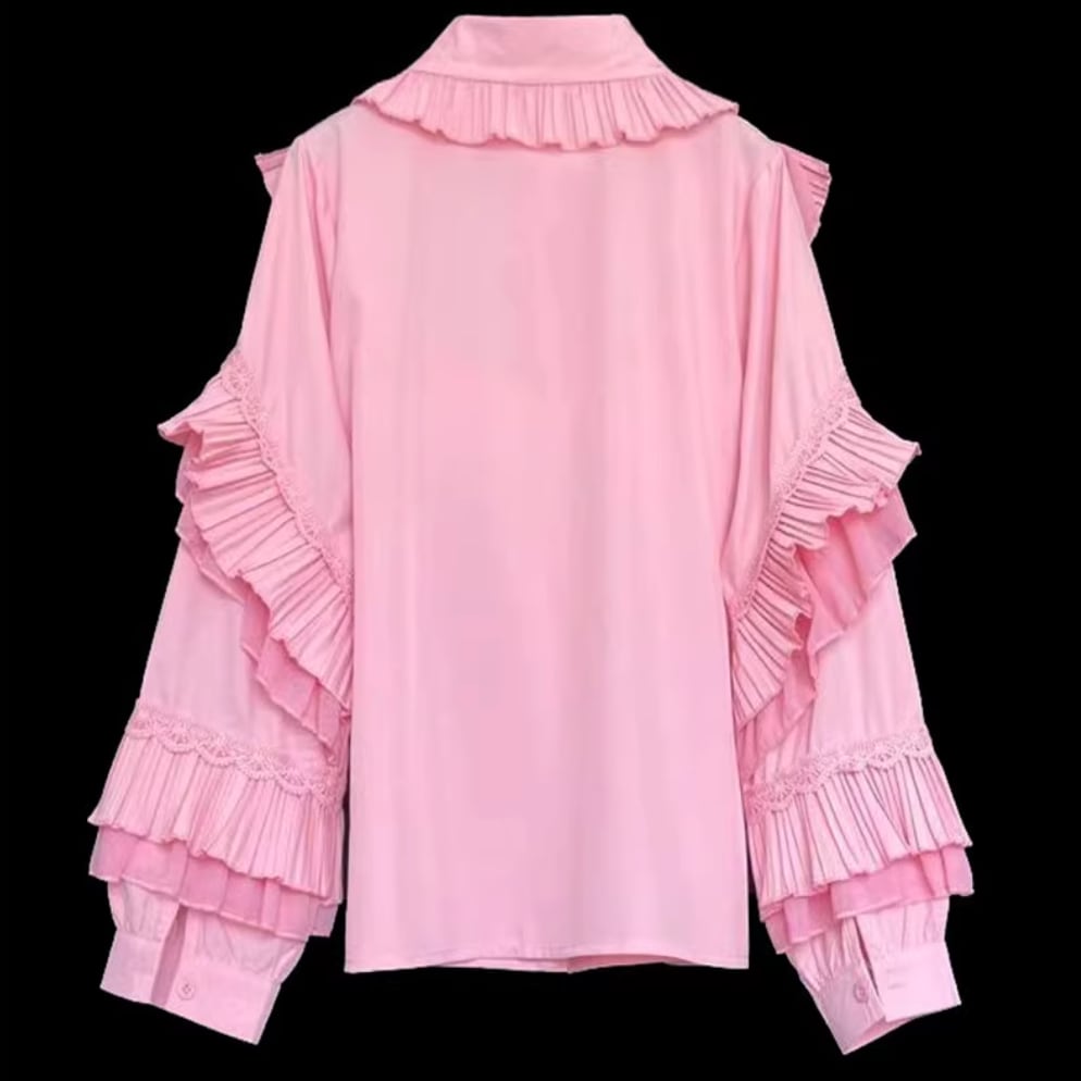たっぷりプリーツフリルリボンシャツ 25108