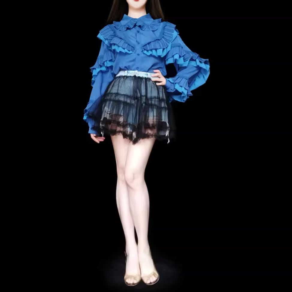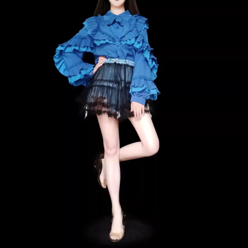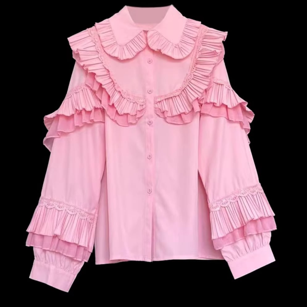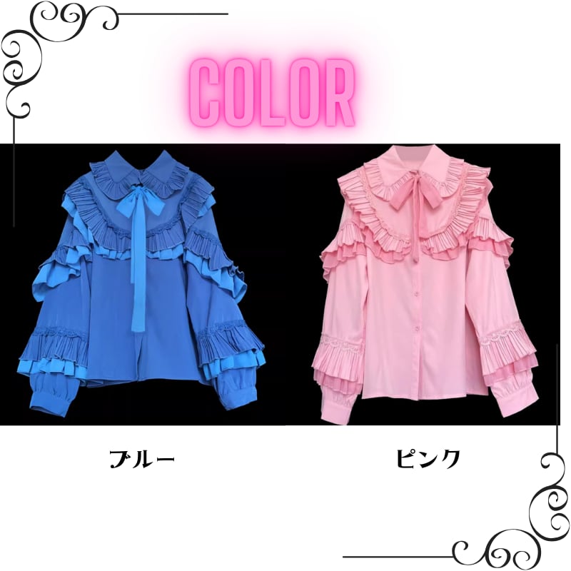たっぷりプリーツフリルリボンシャツ 25108