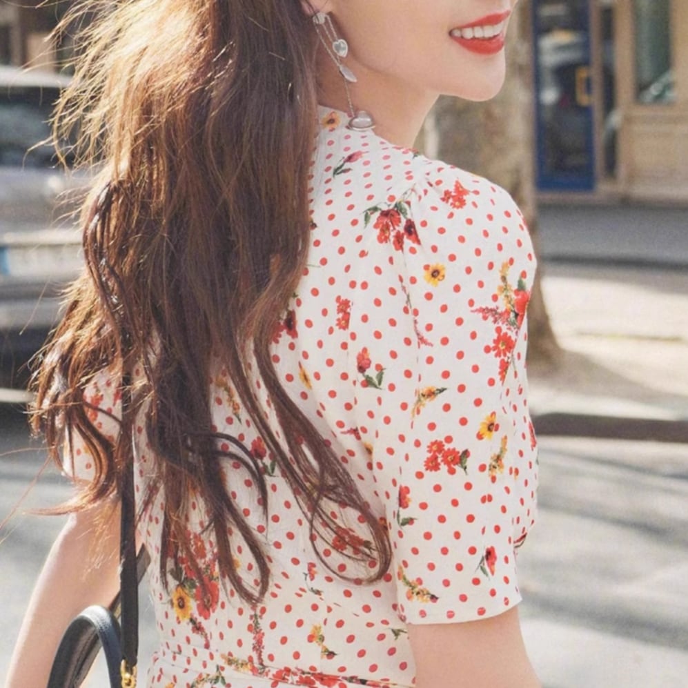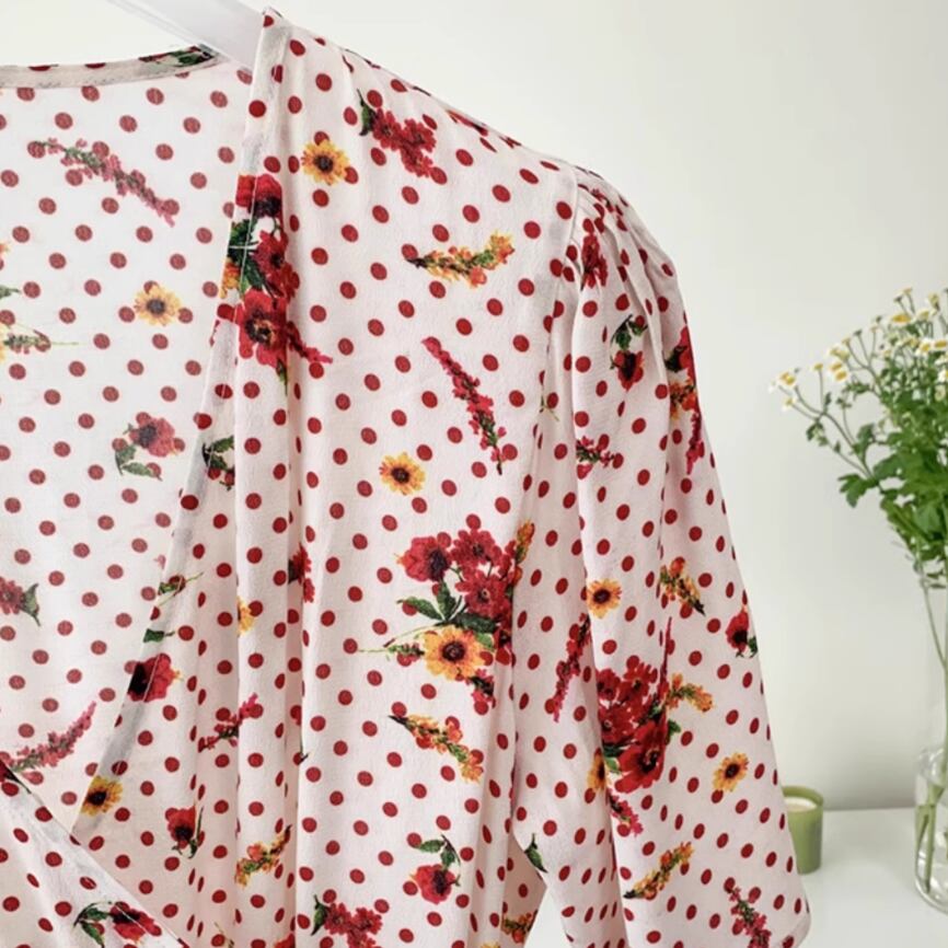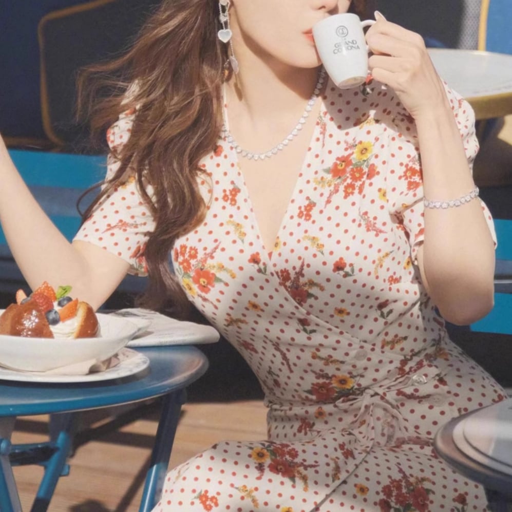 花柄水玉Vネックワンピース 25206