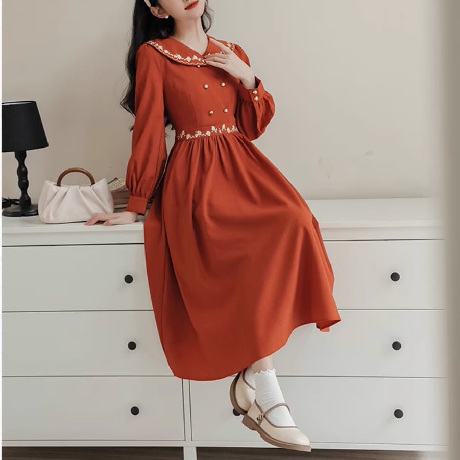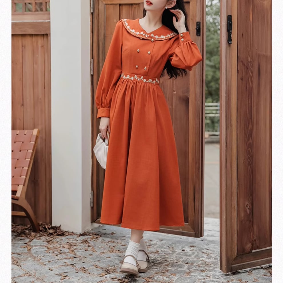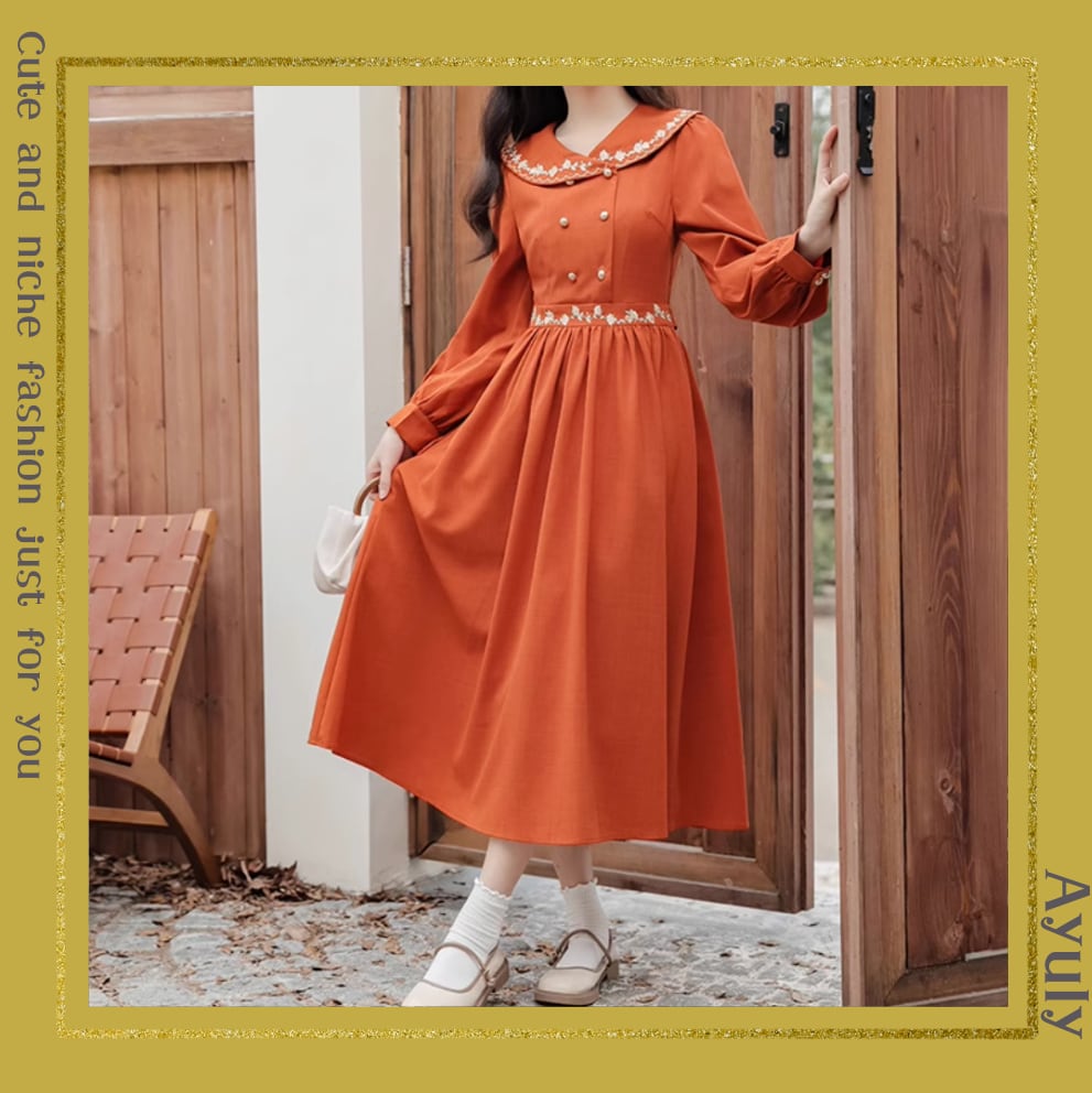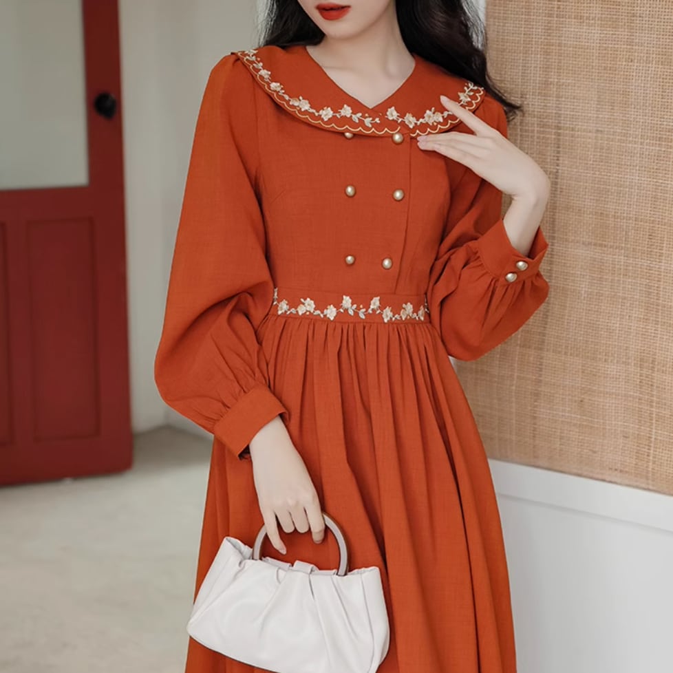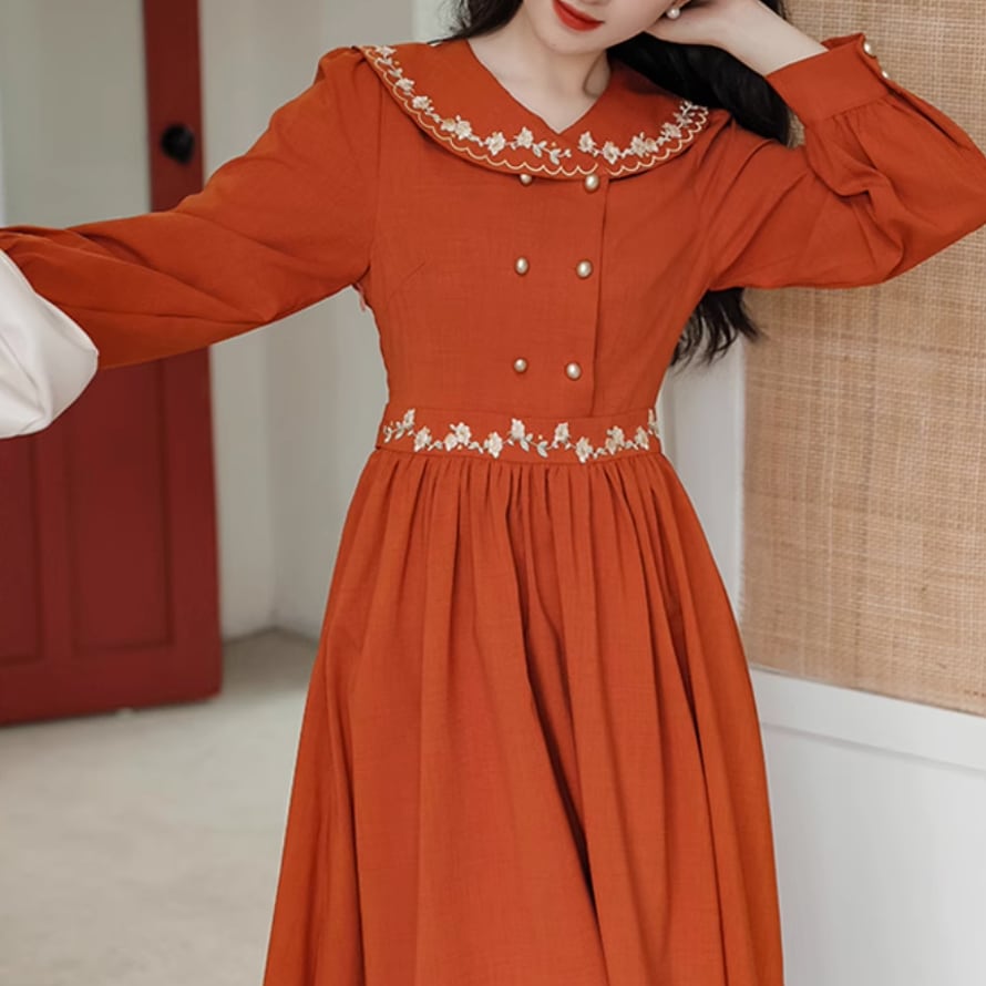 小花刺繍ダブルボタンワンピース 25265