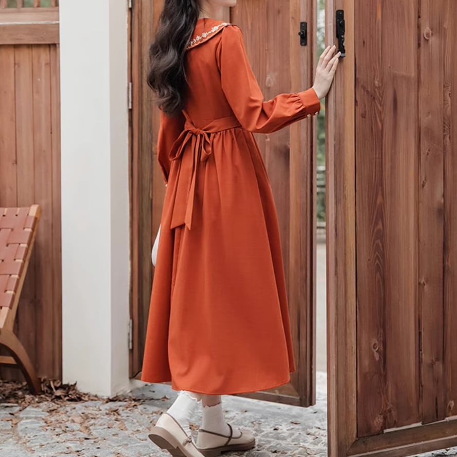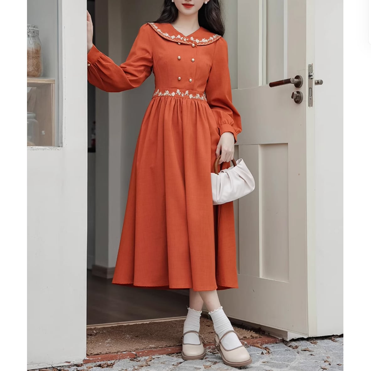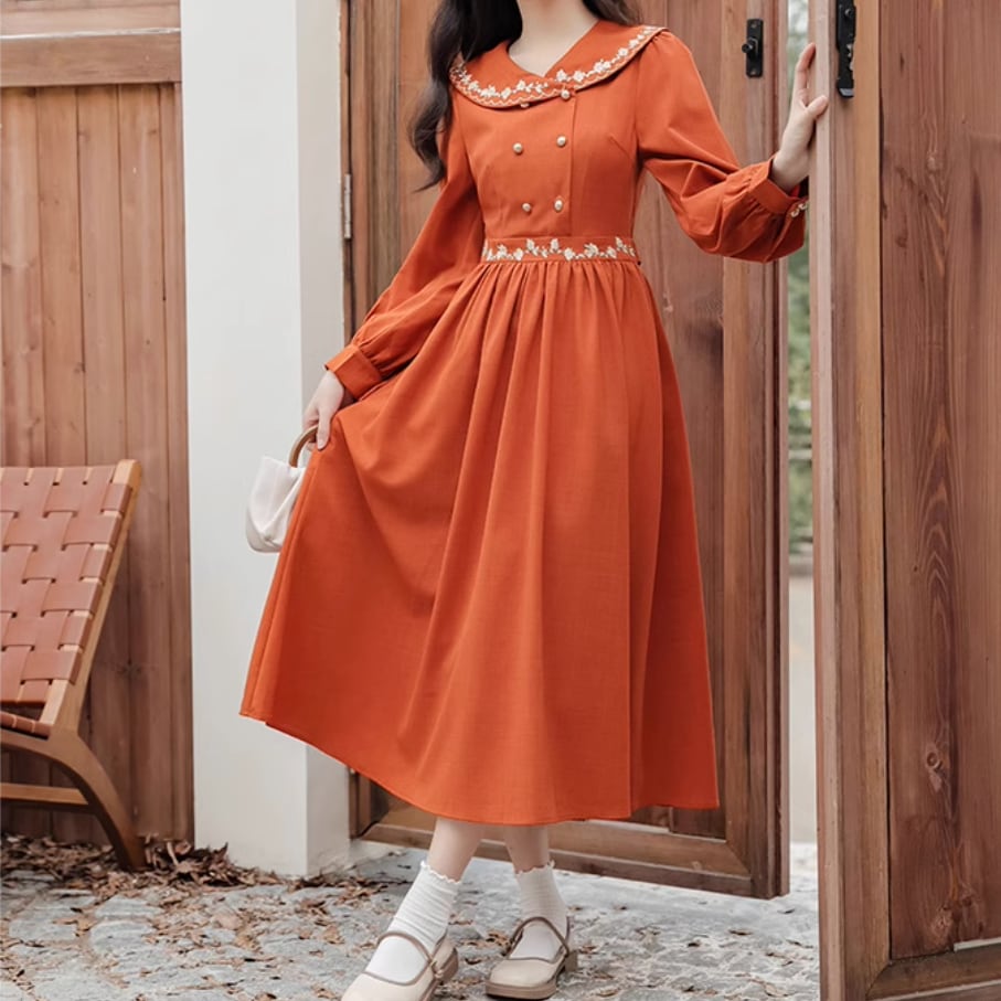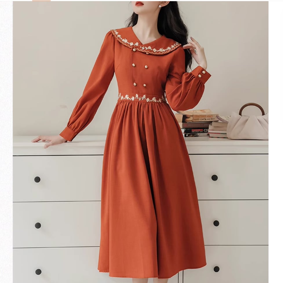 小花刺繍ダブルボタンワンピース 25265