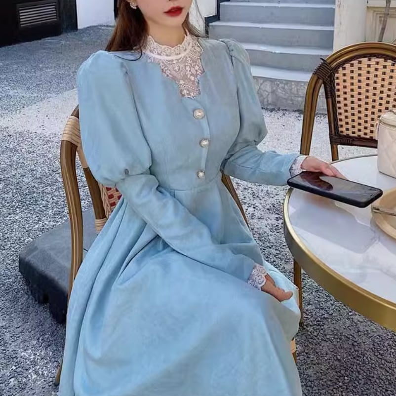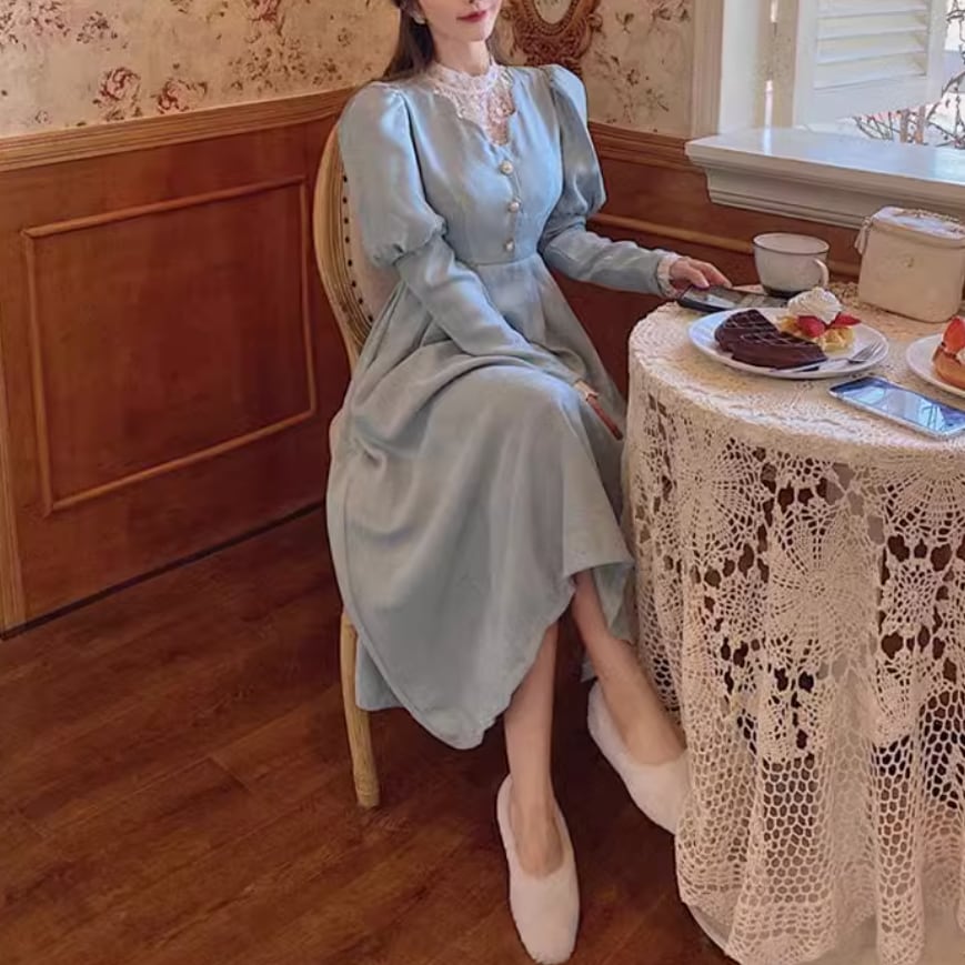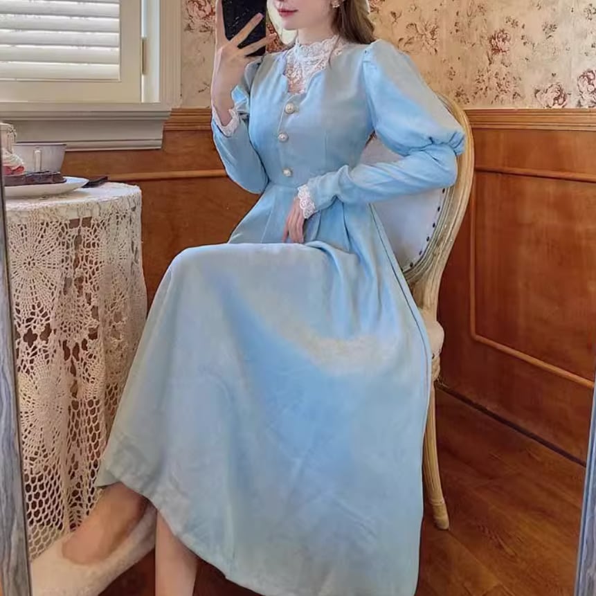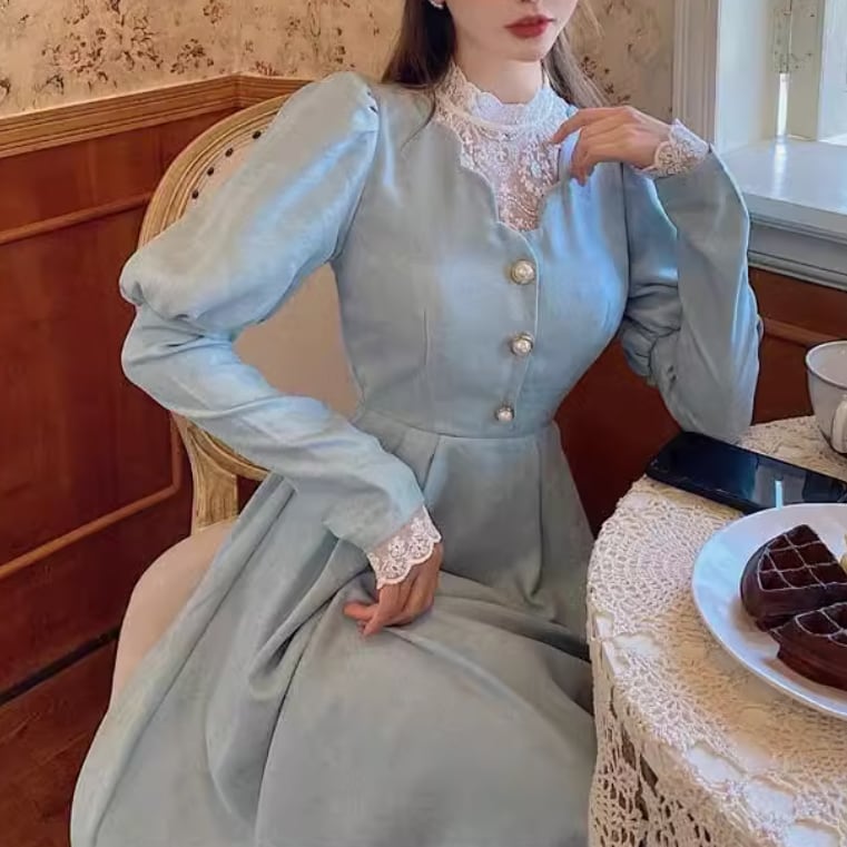 レースパールボタンパフェスリーブワンピース 25299