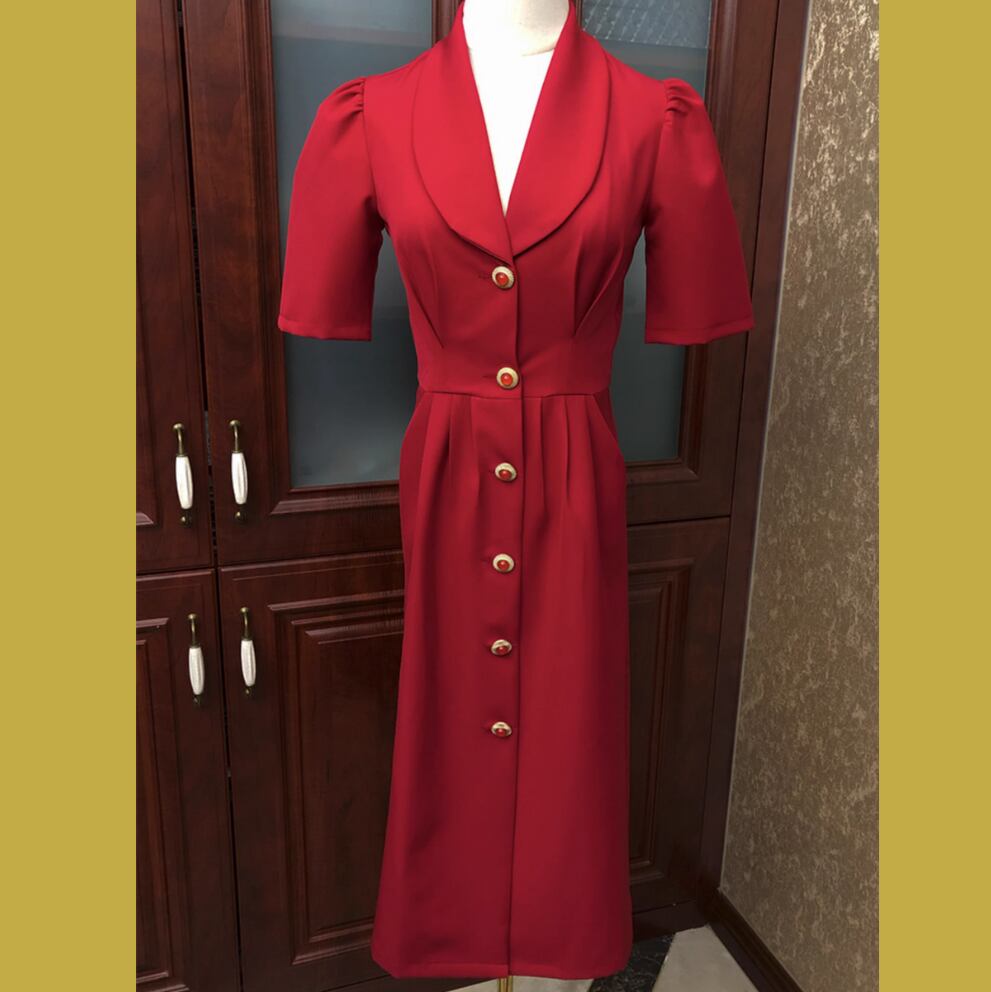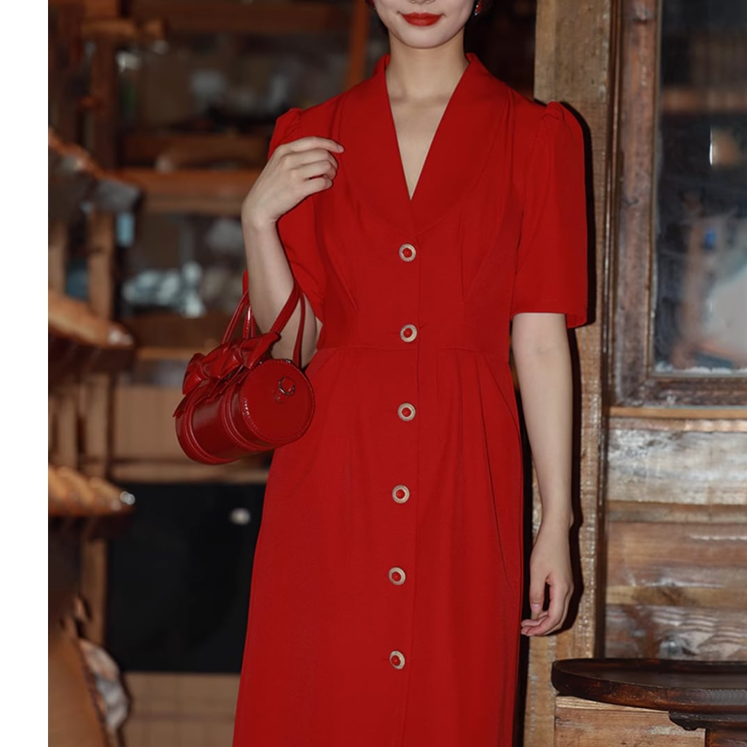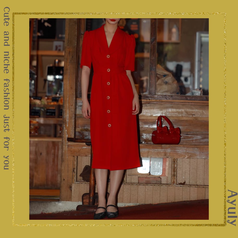 パフスリーブレトロスタイルワンピース 25380